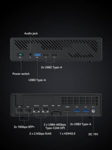 2× 10 GbE SFP+ plus 2× 2,5 GbE RJ45 und obendrauf 2× USB4.